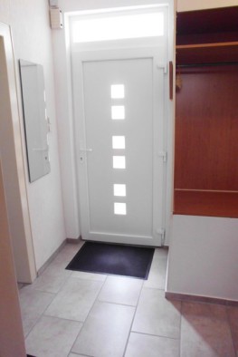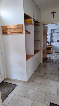 Der Flur mit Garderobe, gesehen vom Wohn-Schlafzimmer aus Richtung Küche.